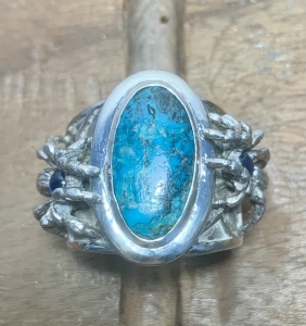 ブルーダイヤモンド鉱山のナチュラルターコイズをセンターにセットしたスパイダーリングリング完成... -