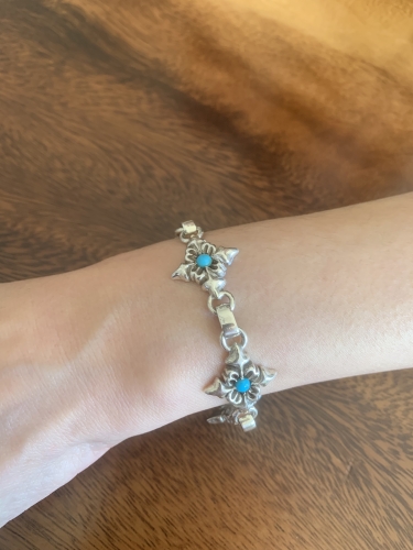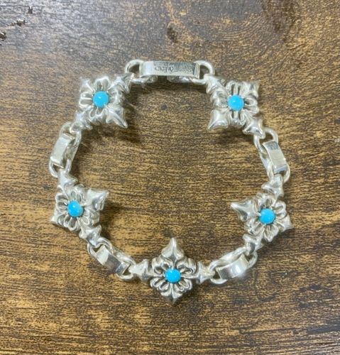 クロスモチーフの5連ブレスレット。ナチュラルのイラン産ターコイズをセンターにセットしました。